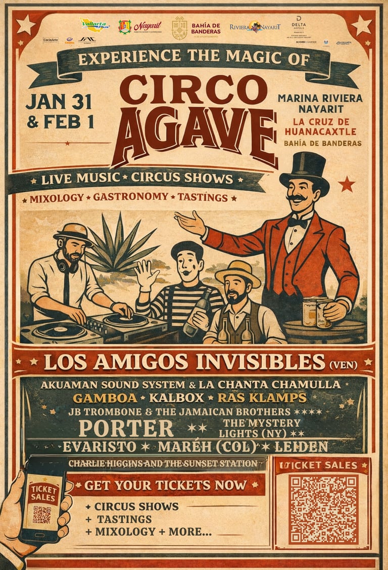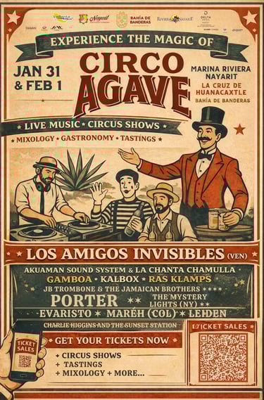 A festival that celebrates the culture of agave with music, circus, gastronomy, tastings, and mixology. Born in Bahía de Banderas, we bring together producers, artists, and brands to create iconic moments where tradition turns into a spectacle.